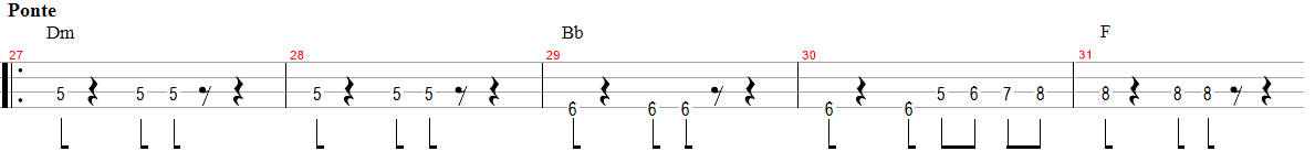 O Ritmo dessa canção é constante lembrando bastante uma marcha fúnebre. Utilizamos para essa levada a técnica do pick-up, que consiste em tocar a corda solta rapidamente para em seguida tocar a tônica. O pick-up é uma técnica que vem dos baixistas de jazz, que usavam muito essa técnica no contrabaixo acústico.