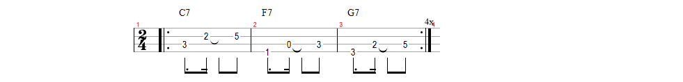 Quase todos os acordes no forró são acordes de sétima, principalmente no baião. Então, vamos utilizar os acordes de Dó com Sétima, Fá com Sétima e Sol com Sétima.