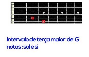 Novamente devo localizar a primeira nota, se quero o intervalo de terça maior, toco a escala maior e localizo a terça maior, depois basta tocar os dois intervalos ao mesmo tempo.