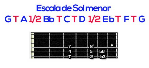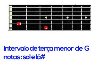 Tocando no instrumento a escala de Gm e os seus intervalos teremos: