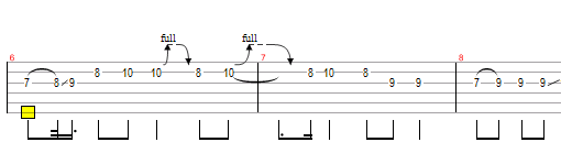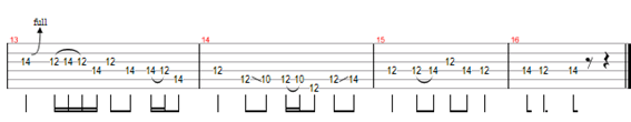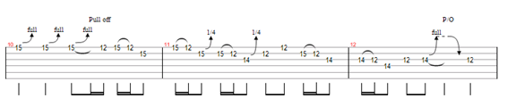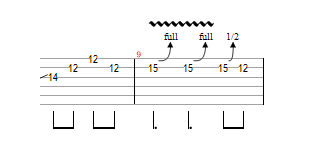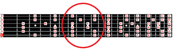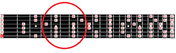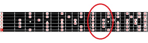 Esse trecho do solo é executado no terceiro desenho da pentatônica de Em, veja o desenho abaixo: