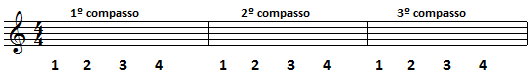 Se aparece o símbolo 4/4 significa que o compasso terá 4 tempos.
