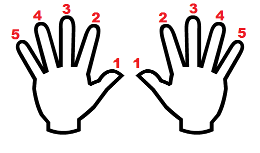 Mão esquerda - 5 4 3 2 1