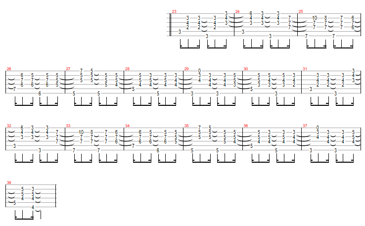 Basicamente criei o solo pensando por acorde e não por uma escala fixa. Para isso foi usado muitos arpejos de acordes, notas outside, modos gregos aplicados aos acordes.